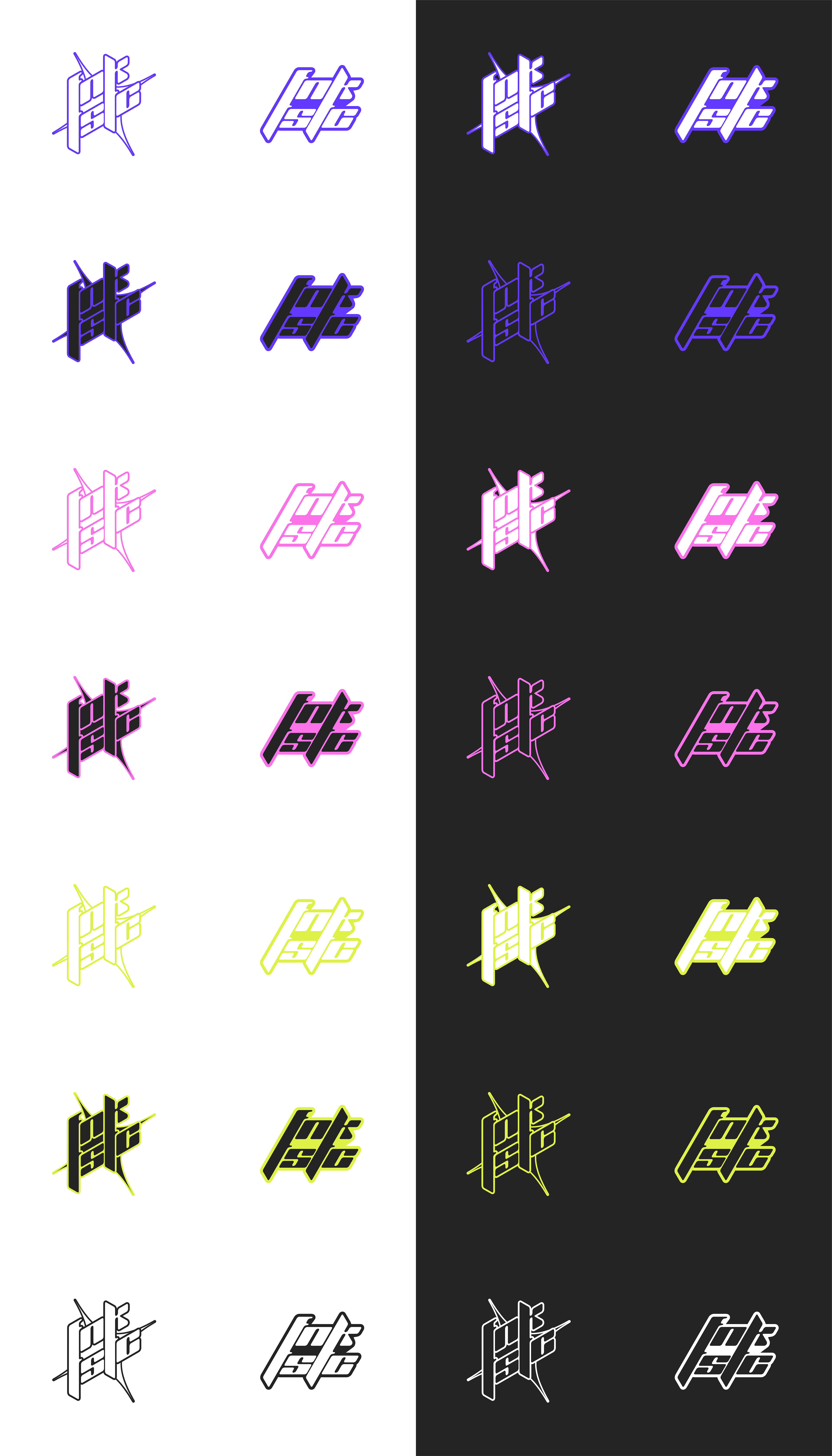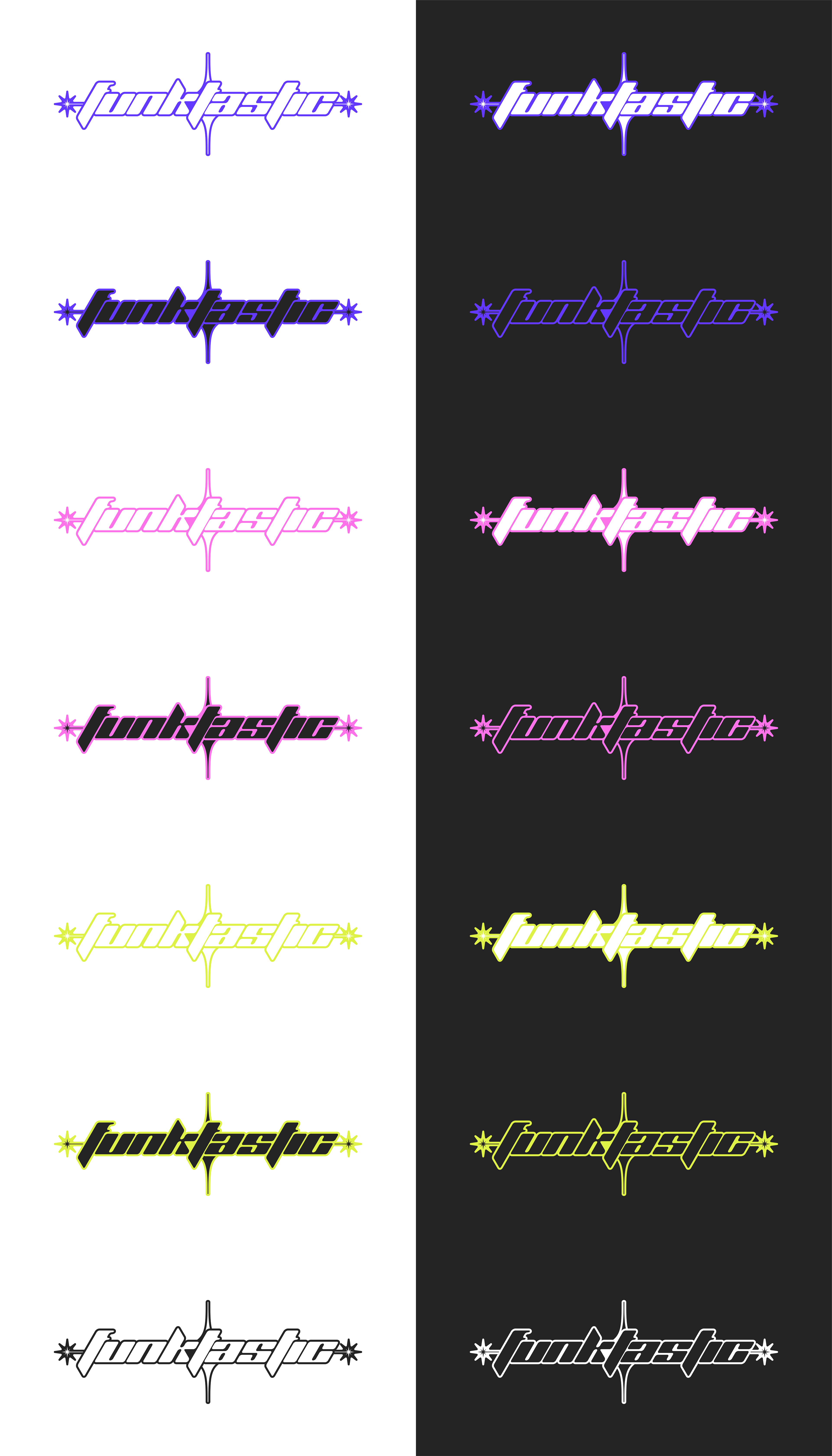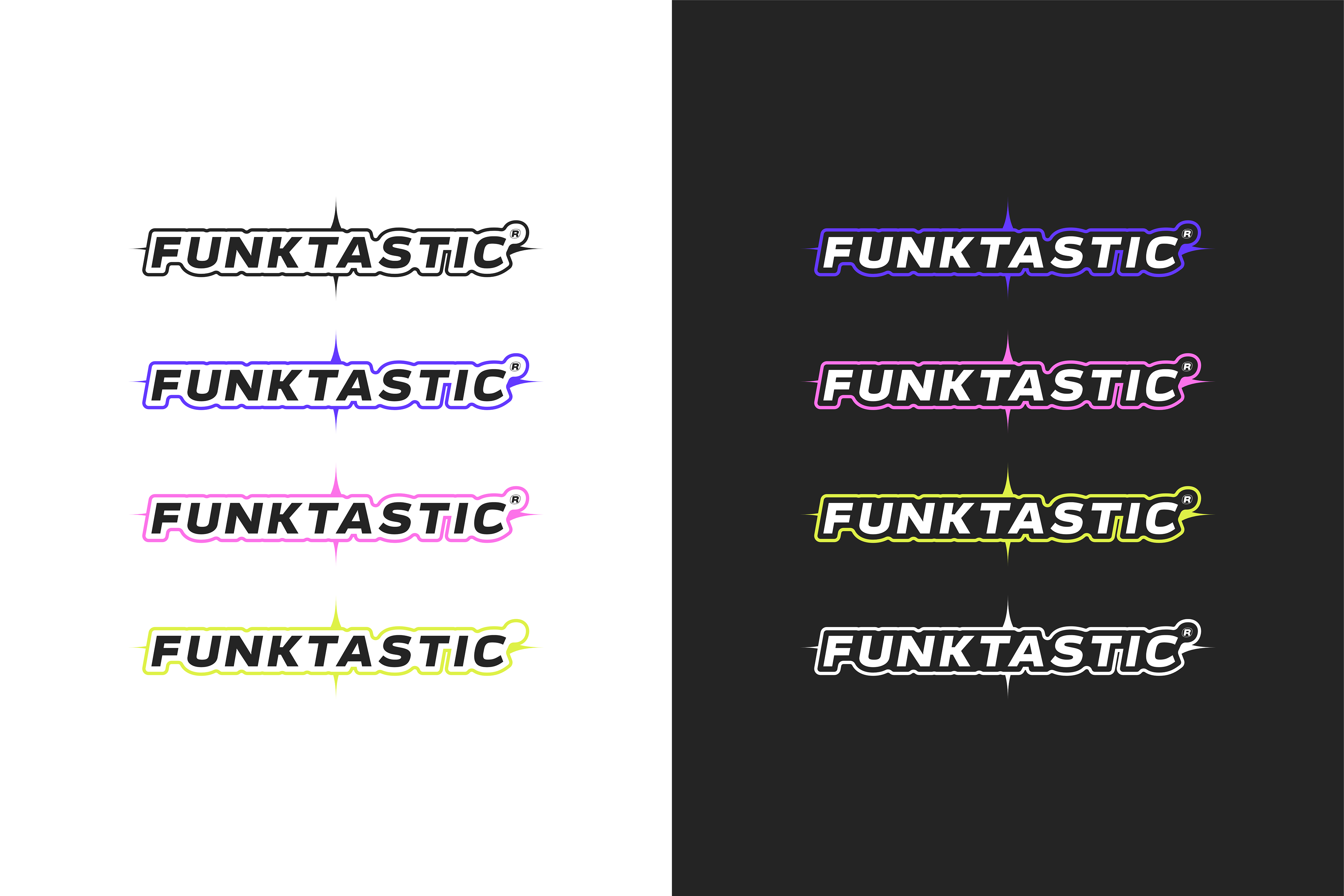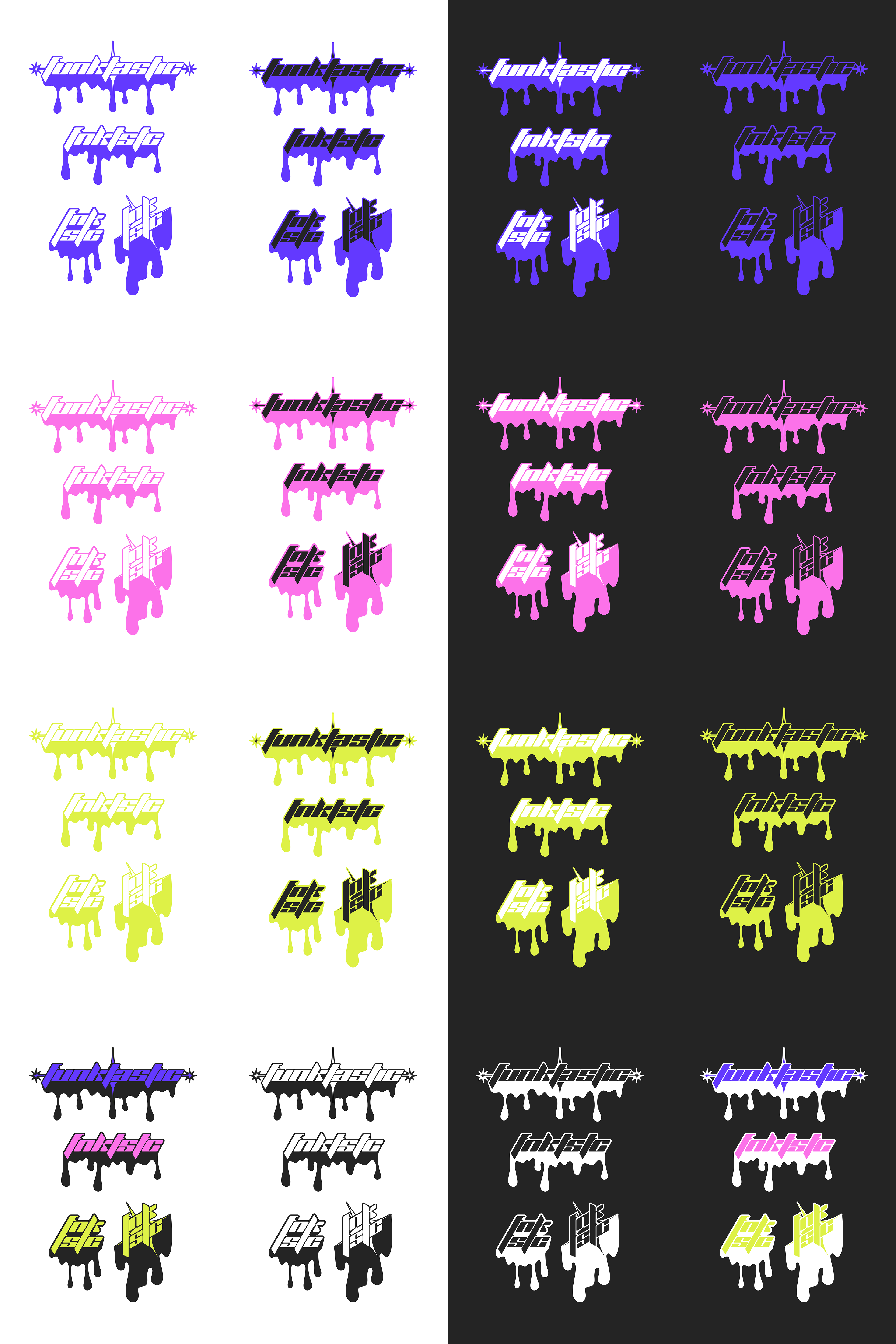 Logo Design Concept for a streetwear clothing brand named funktastic (funky + fantastic), a very loud color scheme to stay in the funky look, accompanied with a trendy & speedy typeface.