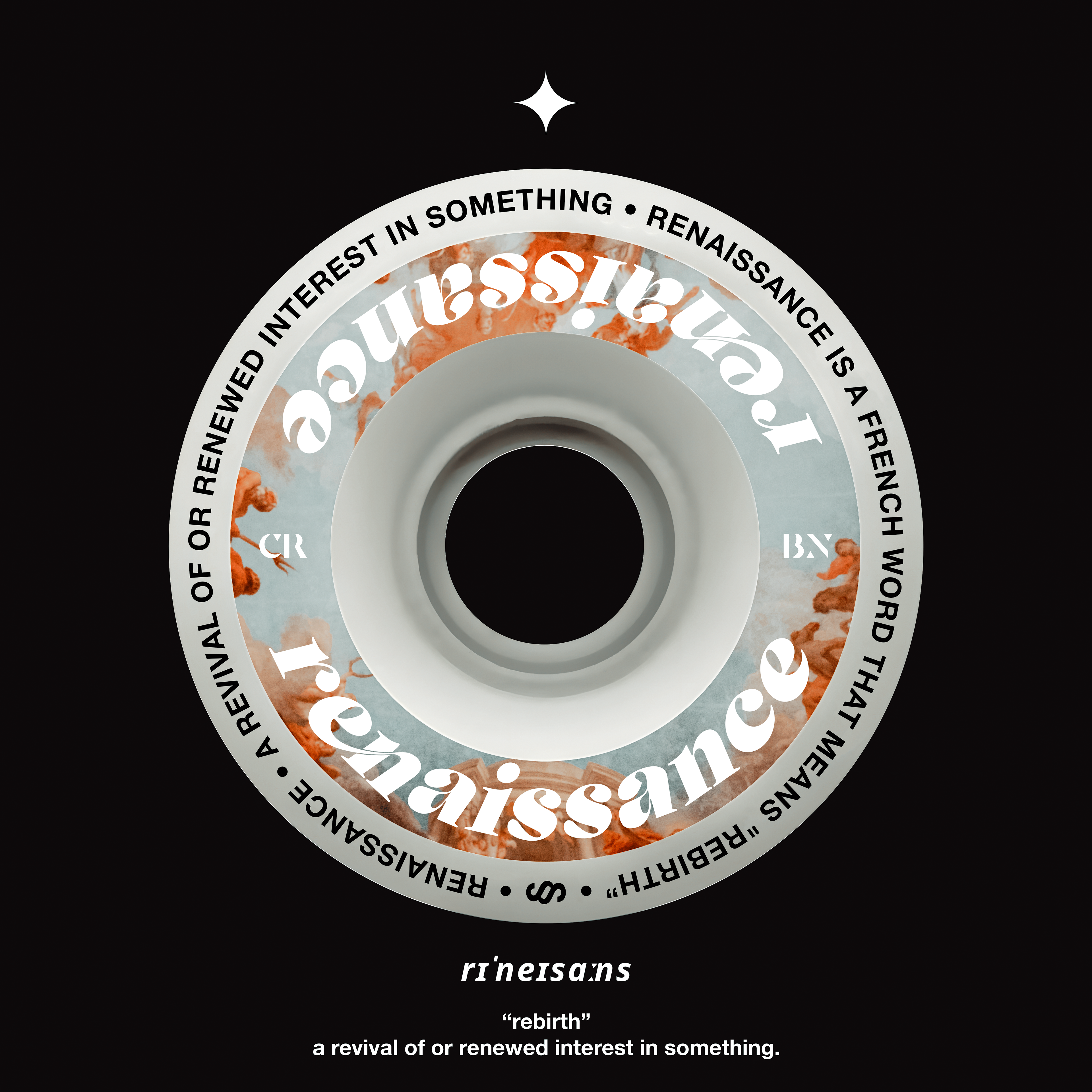This pop culture design depicts the Renaissance, a period from the 13th to the early 17th century. The Renaissance was a time of rebirth for interest in art, architecture, and literary culture from antiquity.